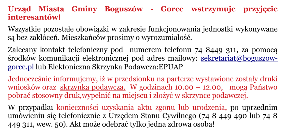 WSTRZYMANIE PRZYJĘĆ INTERESANTÓW W URZĘDZIE MIEJSKIM Thursday, March 19, 2020 10:30 AM 11:30 AM 10:30 11:30 Google Calendar ICS ZARZĄDZENIE - TUTAJ