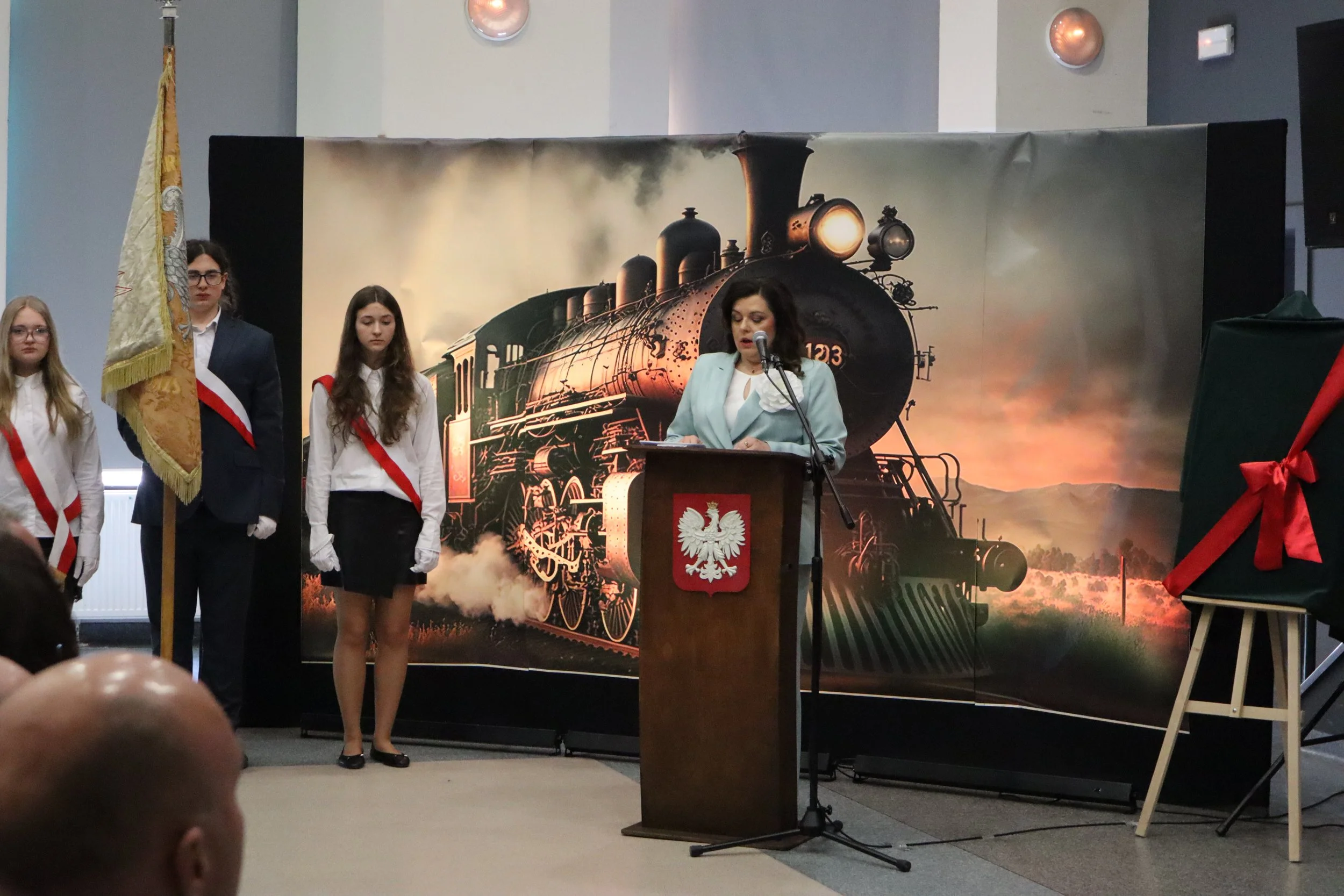 Uroczystość rozpoczęła się wprowadzeniem pocztu sztandarowego oraz wspólnym odśpiewaniem hymnu państwowego, co nadało wydarzeniu podniosły i uroczysty charakter. Następnie głos zabrała Dyrektor szkoły, pani Arletta Kłosińska, która podkreśliła znaczenie wieloletniej tradycji placówki oraz jej rolę w kształtowaniu kolejnych pokoleń młodych ludzi.