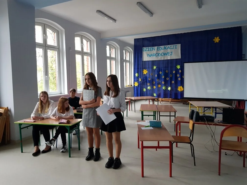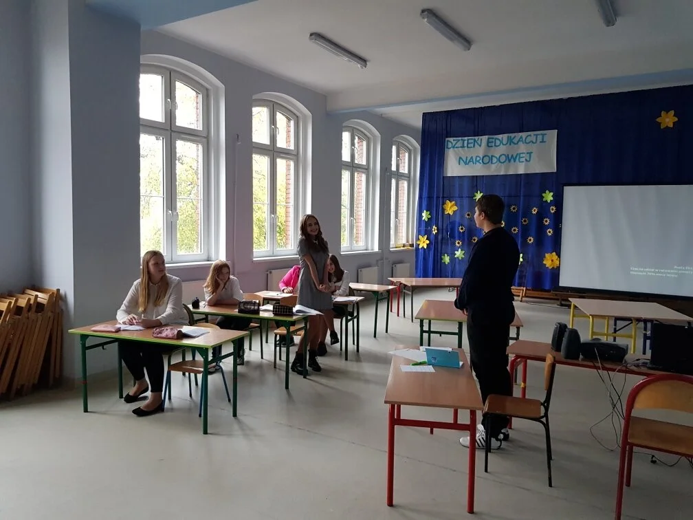 Dnia 14.10.2020 r. w Zespole Szkolno-Przedszkolnym w Boguszowie-Gorcach odbyła się akademia z okazji Dnia Edukacji Narodowej przygotowana przez uczniów klasy VIIIc (pod kierunkiem p. Magdaleny Kois, p. Agnieszki Błażuk- Piejko, p. Urszuli Ogrodnik i p. Andrzeja Jagodzińskiego). Uczniowie szkoły dokonali otwarcia uroczystości, a później poprosili o zabranie głosu Panią dyrektor Arlettę Kłosińską, która serdecznie i gorąco podziękowała gronu pedagogicznemu oraz wszystkim pracownikom administracji i obsługi za zaangażowanie w pracę na rzecz szkoły. Następnie odbyło się przedstawienie pt. „Szkoła na wesoło”. Młodzi artyści słowem uświetnili ten wyjątkowy dzień w roku szkolnym. Wiele ciepłych i miłych słów popłynęło w kierunku wszystkich pracowników szkoły. Uczniowie docenili i podkreślili swoją wdzięczność za codzienny trud, poświęcenie, czujność i troskę o dobro wychowanków. Po przedstawieniu uczniowie zaprosili nauczycieli do wspólnej zabawy. W grupach każdy mógł wykazać się znajomością wiedzy z poszczególnych przedmiotów. Z tym zadaniem wszyscy sobie świetnie poradzili. Następnie pod czujnym okiem pani Urszuli Ogrodnik (z wykorzystaniem aplikacji Kahoot) pracownicy szkoły na tabletach musieli wykazać się jak najlepszą znajomością wiedzy z zakresu zainteresowań i pasji swoich kolegów i koleżanek. To zadanie wywołało mnóstwo emocji i śmiechu. Na koniec uczeń klasy VIIa Bartosz Polesiak zagrał „Sto lat” oraz jedną z etiud na fagocie.