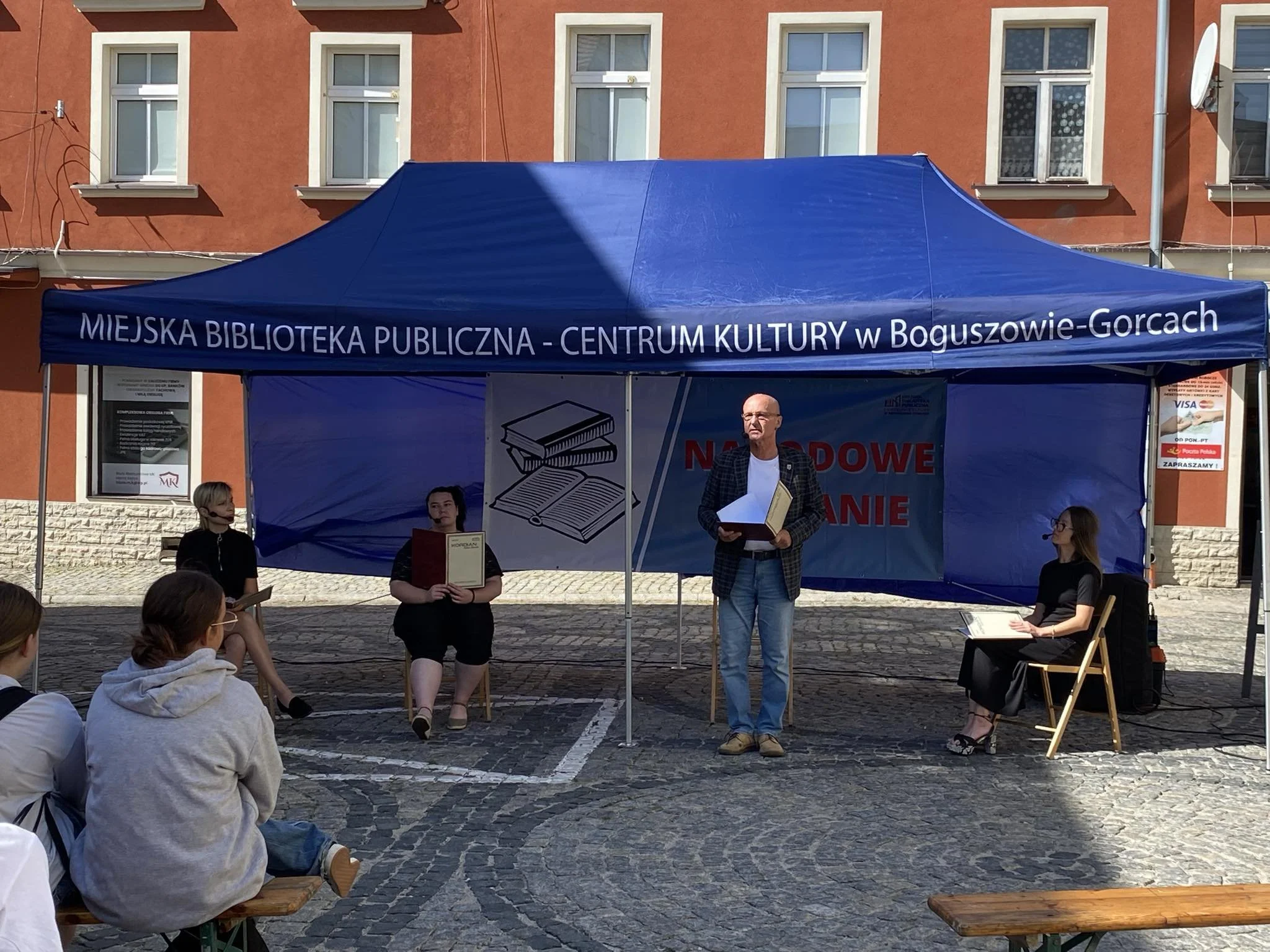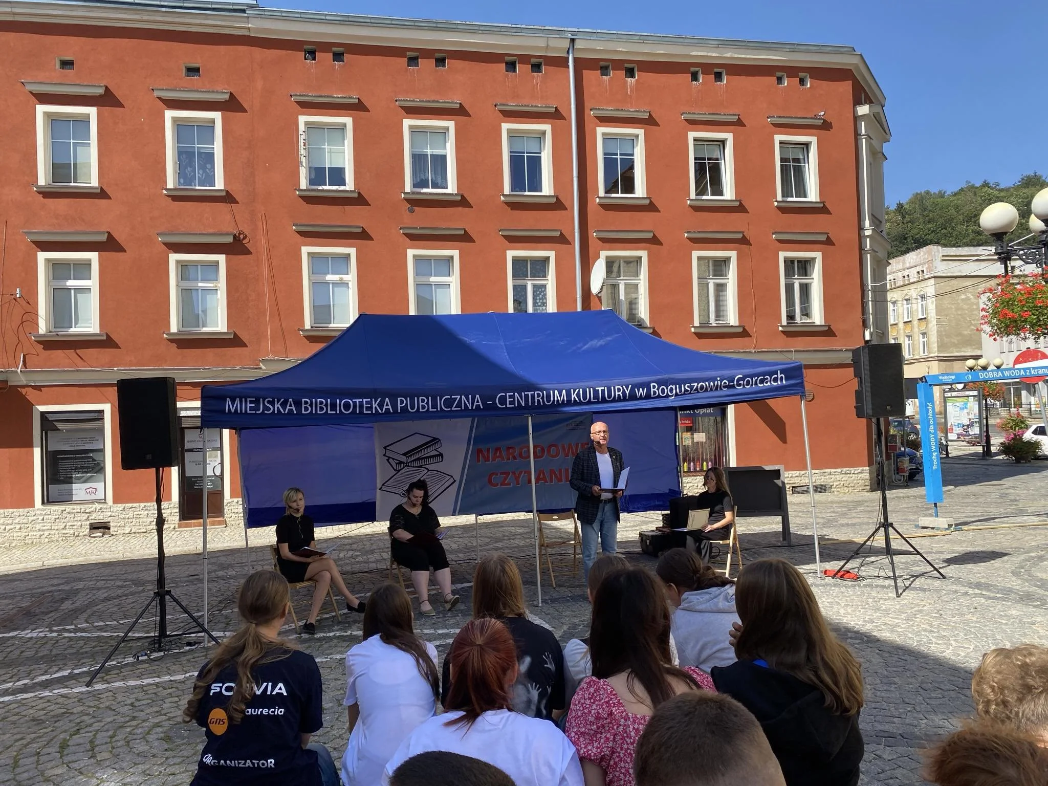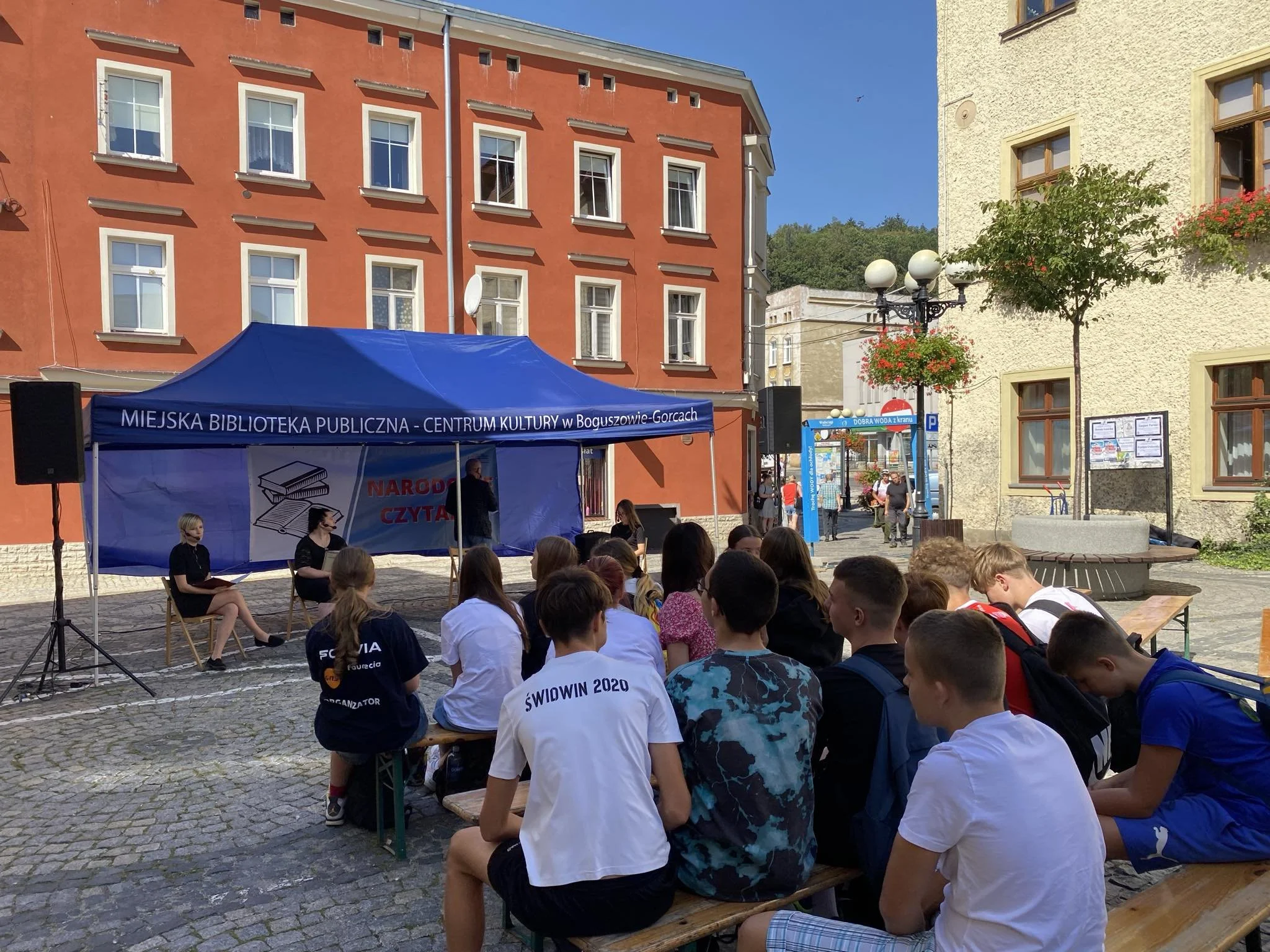 W piątek 6 września uczniowie z klasy VIIIa i VIIIb (pod opieką pani Agnieszki Błażuk-Piejko oraz pani Urszuli Ogrodnik) udali się do Rynku w Boguszowie-Gorcach, gdzie w tym roku odbyła się trzynasta odsłona akcji Narodowego Czytania pod patronatem Pary Prezydenckiej.