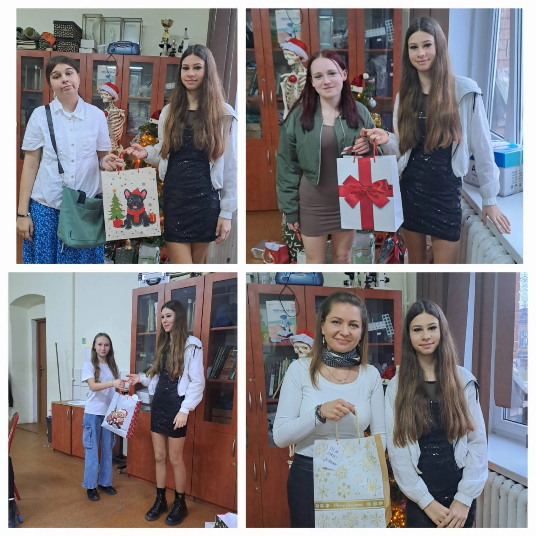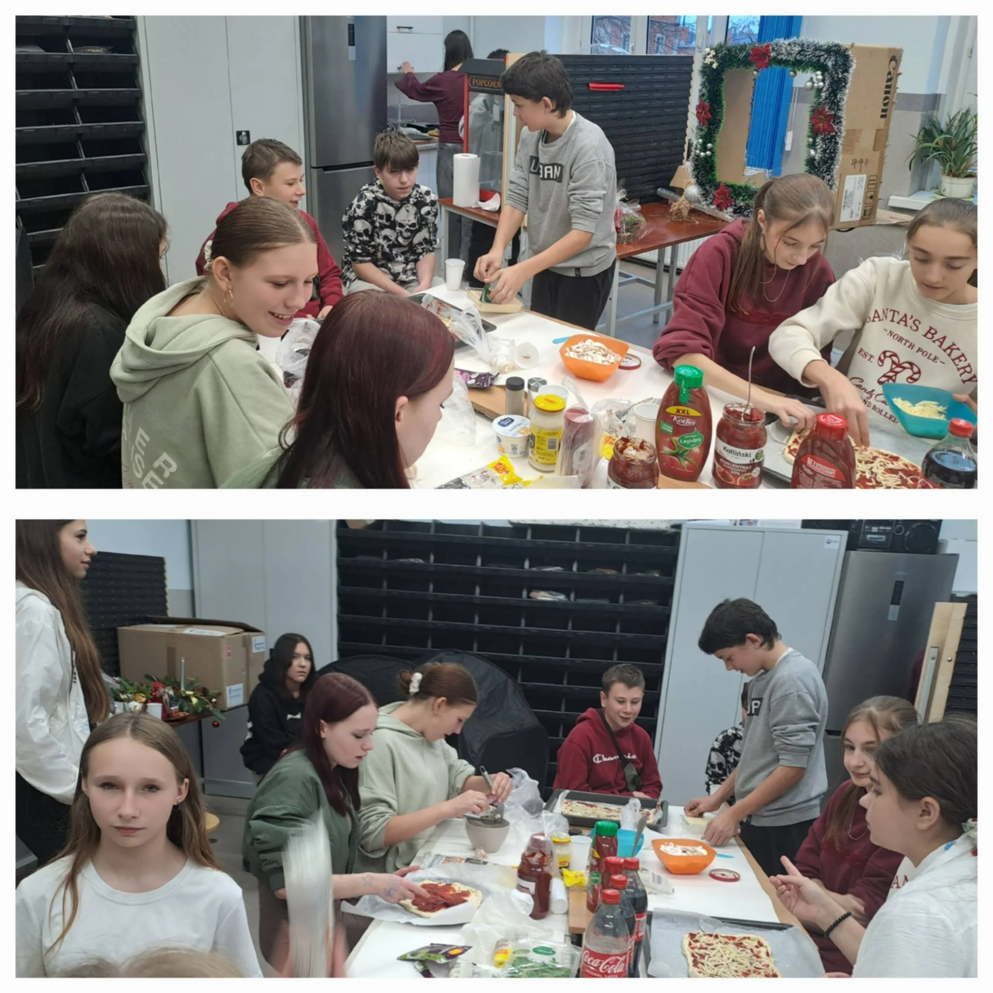 Atmosfera dalekiej Laponii 5 grudnia zagoscila w klasie 7b. Uczniowie sami postanowili zostać Mikołajami, obdarowując się wymarzonymi upominkami. Dekoracja klasy również zmieniła nastrój na bardziej świąteczny. Bo wspólne ubieranie choinki nie tylko zbliża rodziny, ale też i klasę. Dźwięki światowych przebojów umilały nam ten czas. Ale prawdziwa muzyka to ta, ktorą mozemy posłuchać na żywo. Justyna rowniez uczennica szkoły muzycznej, dała koncert na saksofonie przepieknej kolędy "Wśród nocnej ciszy", która wybrzmiała w całej szkole. Po tylu emocjach, zabraliśmy się do wspólnego pieczenia pizz. Bo czy może być lepsza integracja zespołu, jak wspólne przygotowywanie posiłku, a potem zajadanie go ze smakiem? A ja osobiście dziękuję mojej klasie za ogromne zaangażowanie i miły czas. Ten dzień z pewnością dla Was i dla mnie był bardzo udany.