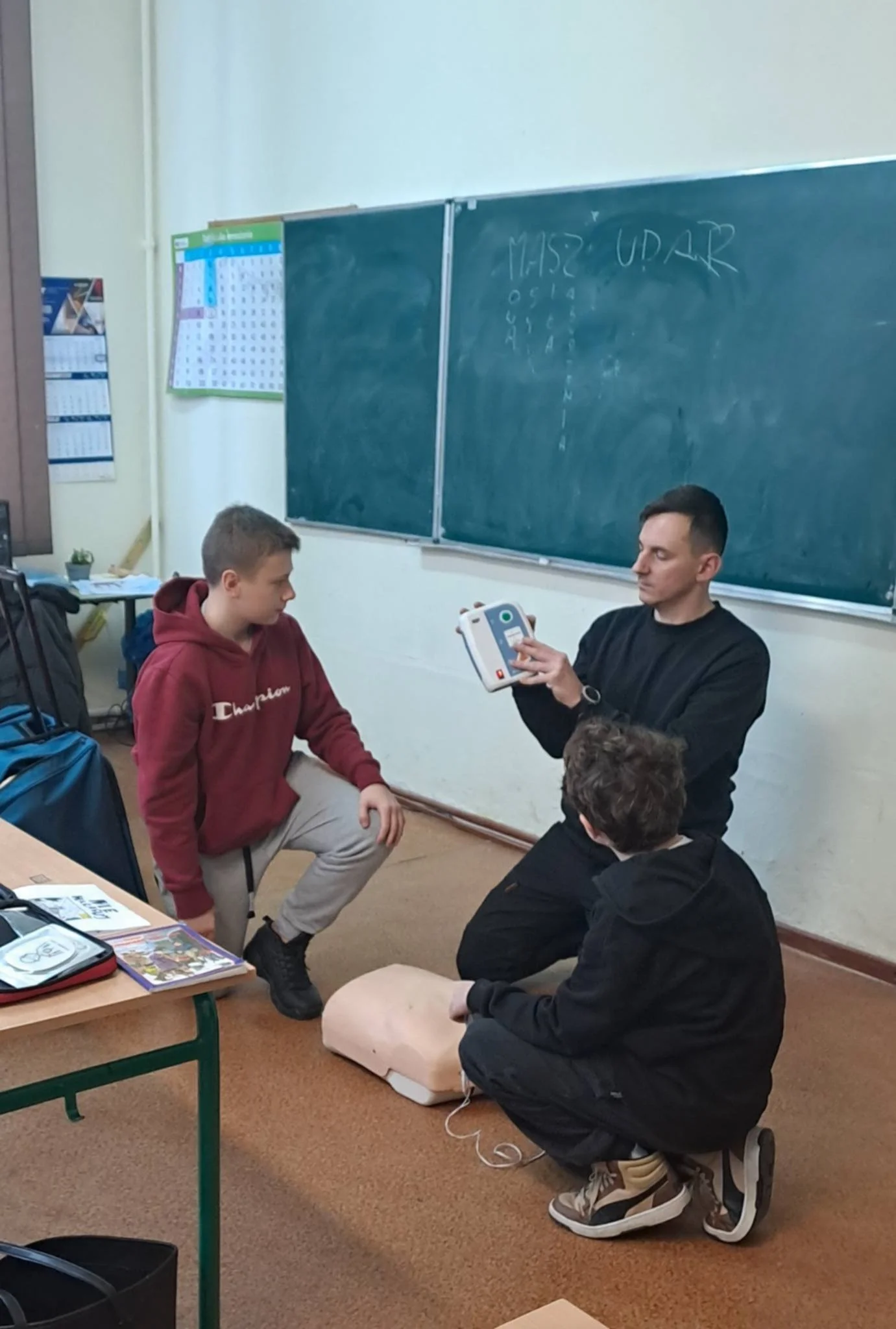 W styczniu w naszej klasie mieliśmy kolejnego gościa ze służb mundurowych, tym razem był to strażak, który powiedział nam o swojej pracy i w rzetelny sposób omówił zasady pierwszej pomocy. Uczniowie mieli okazję ćwiczyć na fantomie i defibrylatorze pomoc przedmedyczną. Dziękujemy za fachową wiedzę.