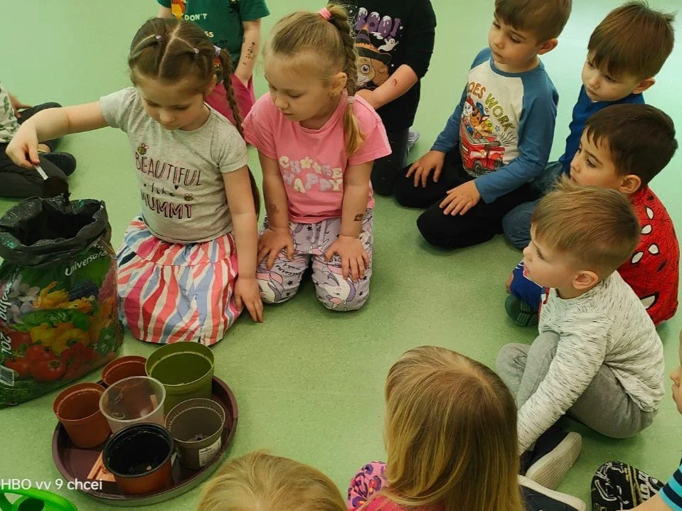 Wiosna już w pełni zagościła za oknem i w ogrodach, a na oknie w najmłodszej grupie „Słoneczek” pojawiły się pierwsze wysiewy. Już w marcu dzieci sadziły cebulki, by po kilku dniach posmakować własnoręcznie wyhodowany szczypiorek, posialiśmy na podłożu z waty nasiona rzeżuchy, a na słoiczku i gazie obserwujemy rosnące korzonki i kiełkujące nasiona fasoli. Nasz kącik przyrodniczy to doskonałe miejsce do prowadzenia bezpośredniej obserwacji, a dzieci poznają cykl rozwojowy roślin i uczą się systematyczności w ich pielęgnacji.